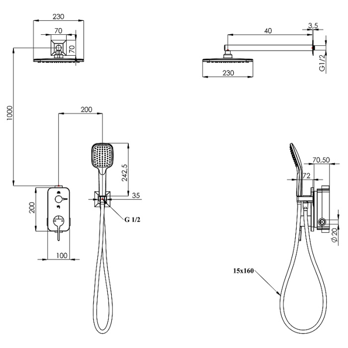 1 режим струи верхнего душа