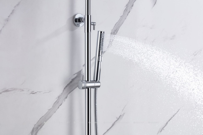 Переключатель режимов - поворотный (левая ручка), 3 положения: Верхний Душ_Выключено_Ручной Душ/Излив. Поворотный излив-дивертер, при открытом изливе включен излив, при закрытом изливе - ручной душ. Штанга-телескоп: Нержавеющая сталь