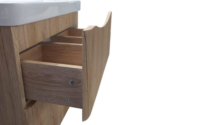 Материалы тумбы: МДФ, влагостойкая ЛДСП, полимерное покрытие ПВХ, врезная ручка, европейская фурнитура
