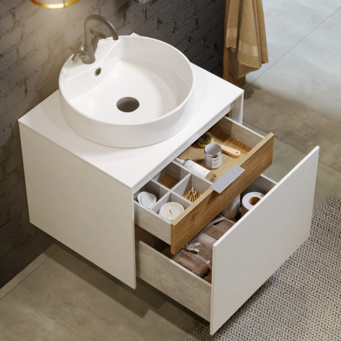 - К данной тумбе подходит любой накладной умывальник