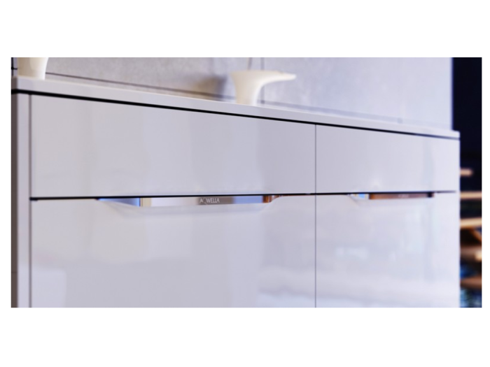 - В соответствии с зонами умывальников тумба оборудована 2 ящиками полного выдвижения и системой закрывания