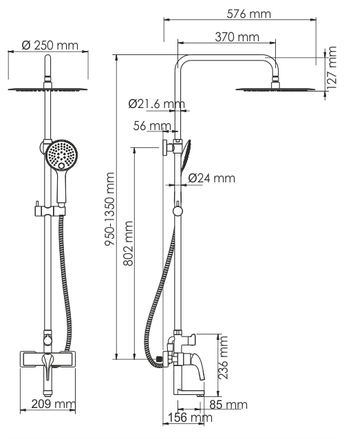 Стойка для душа, Ø 24 мм регулируемая по высоте