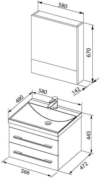 Раковина-столешница Нота-58 (Aquanet) (281220)