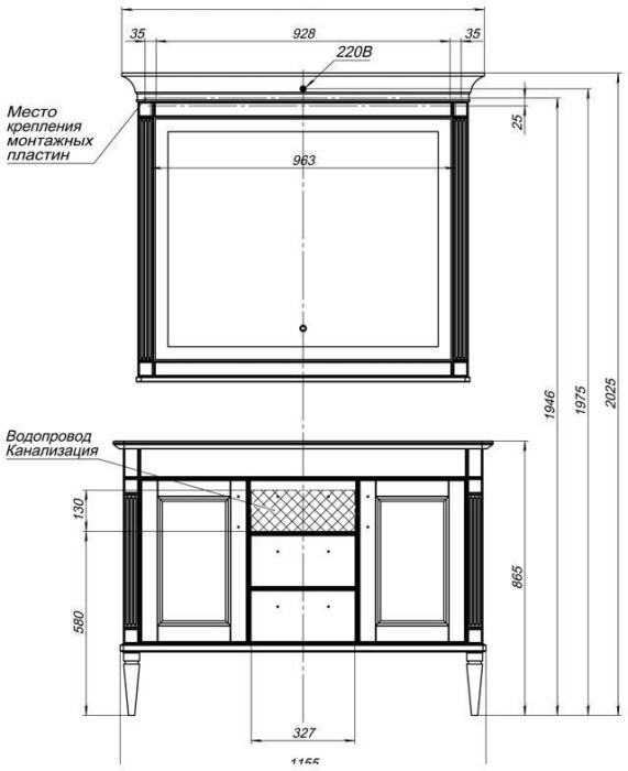 Тумба: Aquanet Селена 120, белый/серебро, 2 распашные дверцы, 3 выдвижных ящика (201652)