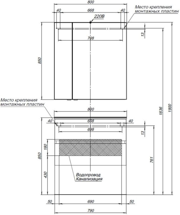 Зеркало: Aquanet Алвита 80, цвет серый антрацит, 2 распашных дверцы (240109)