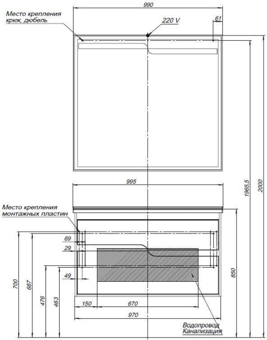 Тумба: Aquanet Модена 100, цвет белый, 2 выдвижных ящика (198489)