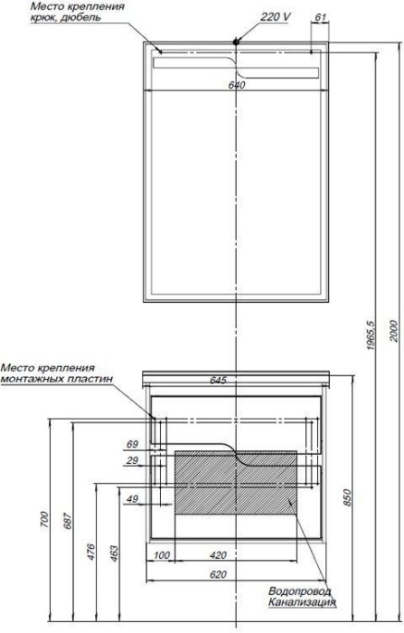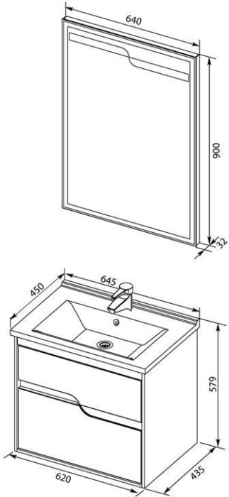 Тумба: Aquanet Модена 65, цвет белый, 2 выдвижных ящика (198485)