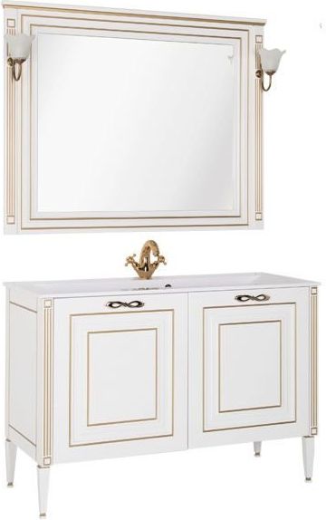 Тумба: Aquanet Паола 120, цвет белый/золото, 2 распашные дверцы, 1 стеклянная полка (186114)