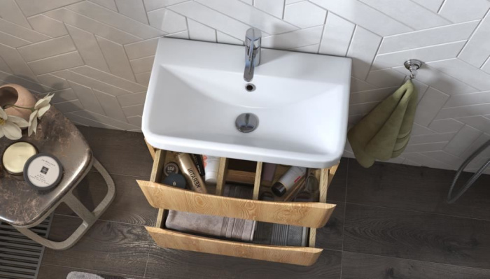 Материалы тумбы: МДФ, влагостойкая ЛДСП, полимерное покрытие ПВХ, врезная ручка, европейская фурнитура