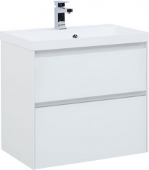 Производители позаботились о деталях. Ящики лишены выступающих деталей, ручки интегрированы в фасад. Тумбу шириной 70 см можно из подвесного элемента преобразовать в напольный, просто докупив универсальные ножки. Раковина из литьевого мрамора «Орлеан» относится к числу накладных моделей и внешне выглядит как единое целое с тумбой. Ящики тумб оснащены направляющими Hettich Quadro c плавным закрыванием, более известным нам как доводчик.