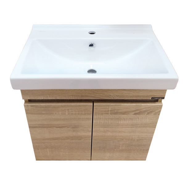 Подвесная тумба с двумя распашными дверцами. Петли створок оснащены механизмами плавного закрывания.