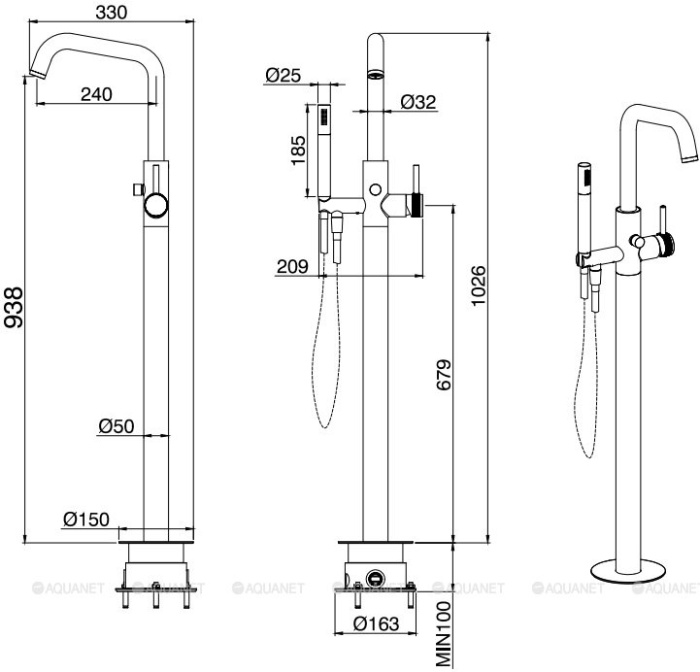 Шланг 1.5 метра SUS304 (EPDM inside, anti-twist, brass nut) Дивертер на корпусе Монтажный блок EASY BOX•