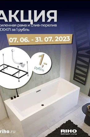 При покупке ванны бренда Riho в магазине АртСантехника с 07 июня 2023 г. по 31 августа 2023 года - усиленная рама и слив перелив MD0471 за 1 рубль.